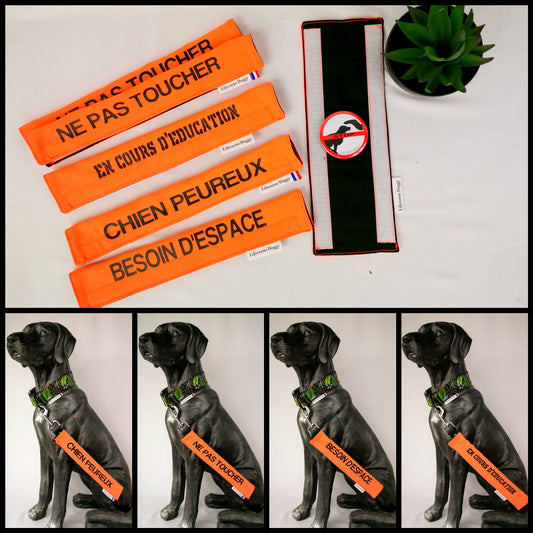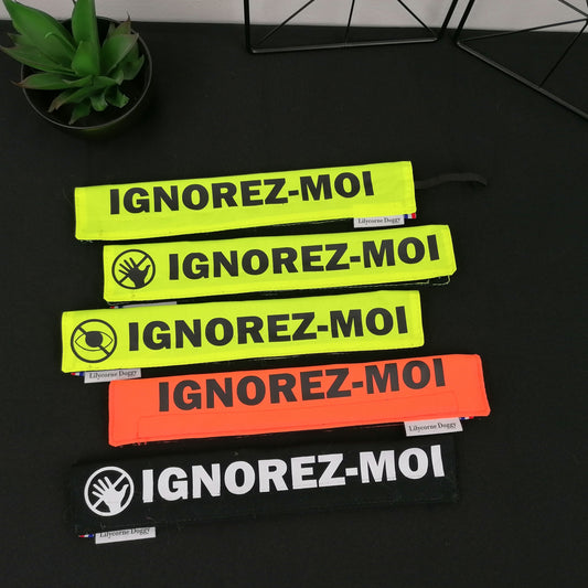 C'est pourquoi les manchettes de laisse se scratch autour de la laisse idéalement sur la partie basse, c'est ainsi que le message sera visible à 360°.
