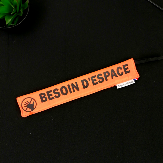 Cela permet de coincer l'élastique dans le mousqueton de la laisse pour que le message soit toujours le plus visible possible.