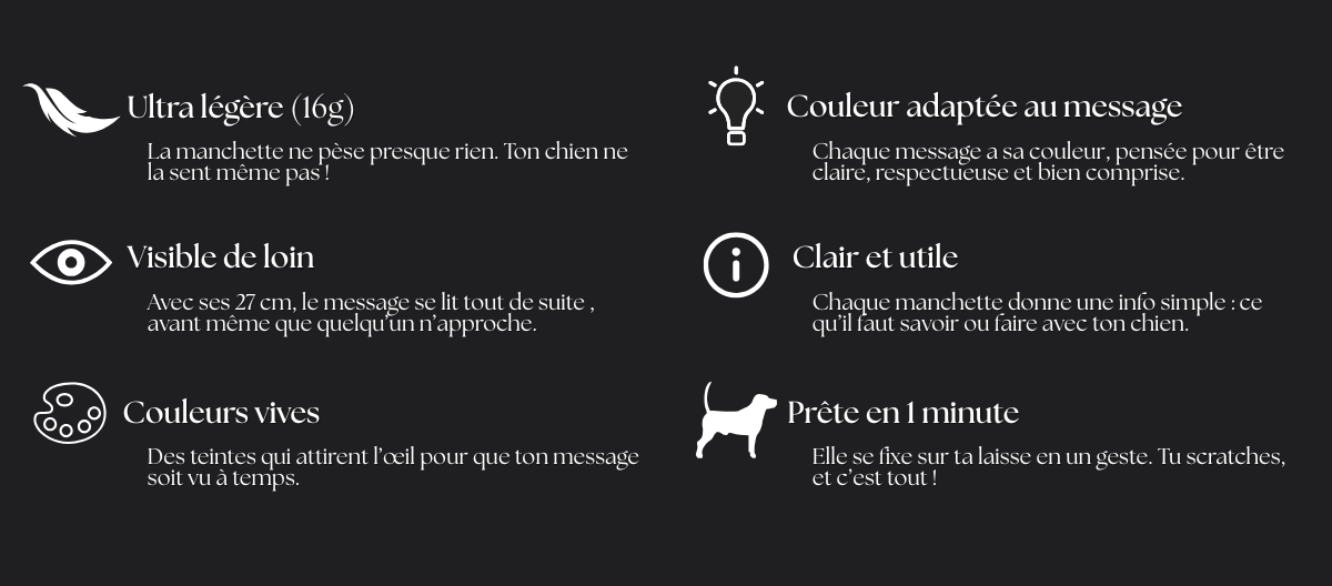 Best seller depuis 2019, les manchettes de laisse sont l'outil indispensable pour des promenades en toute tranquillité avec ton chien.